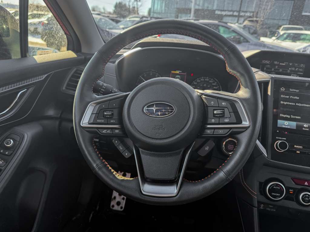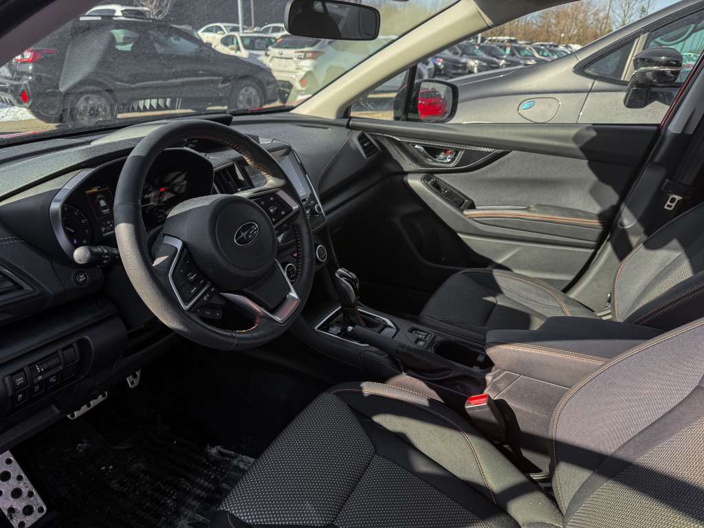 Subaru Crosstrek Touring EyeSight 2023, 83 987 km, AWD, transmission automatique, moteur 2,0L, sièges chauffants, couleur rouge éclatante. Ce Crosstrek n’a rien à cacher : son historique est sans accident, et il n’a connu qu’un seul propriétaire, preuve d’un entretien soigné et d’un usage responsable. En version Touring avec le système EyeSight, il offre une tranquillité d’esprit remarquable grâce à ses technologies de sécurité avancées, tout en promettant des trajets confortables, peu importe la saison, grâce à ses sièges chauffants et sa traction intégrale légendaire Subaru.