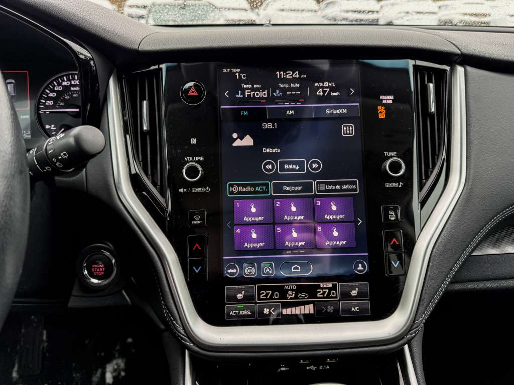 Subaru Outback Tourisme 2023, 79 886 km, intégrale AWD, moteur 2.5L, transmission automatique, historique sans accident, un seul propriétaire. Cette Outback noire élégante est équipée de CarPlay, d’un toit ouvrant panoramique, d’un hayon électrique, de sièges chauffants et électriques ainsi que du verrouillage centralisé. Son habitacle spacieux et raffiné offre confort et sécurité, parfait pour les routes canadiennes et les escapades familiales. Grâce à sa traction intégrale légendaire et sa réputation de fiabilité, elle inspire confiance en toutes saisons. Un choix judicieux pour ceux qui veulent l’aventure sans compromis, avec toute la technologie et la tranquillité d’esprit Subaru. **Points forts et distinctions au Canada pour le Subaru Outback 2023 :** - Finaliste « Meilleur VUS intermédiaire », Guide de l’auto 2023 - Gagnant « Meilleure sécurité », IIHS 2023 - VUS de l’année, Auto123.com 2023 - Gagnant « Fiabilité supérieure », Protégez-Vous 2023 Chaque véhicule est soigneusement sélectionné à la main. Parce que vous méritez ce qu’il y a de mieux, tout simplement.