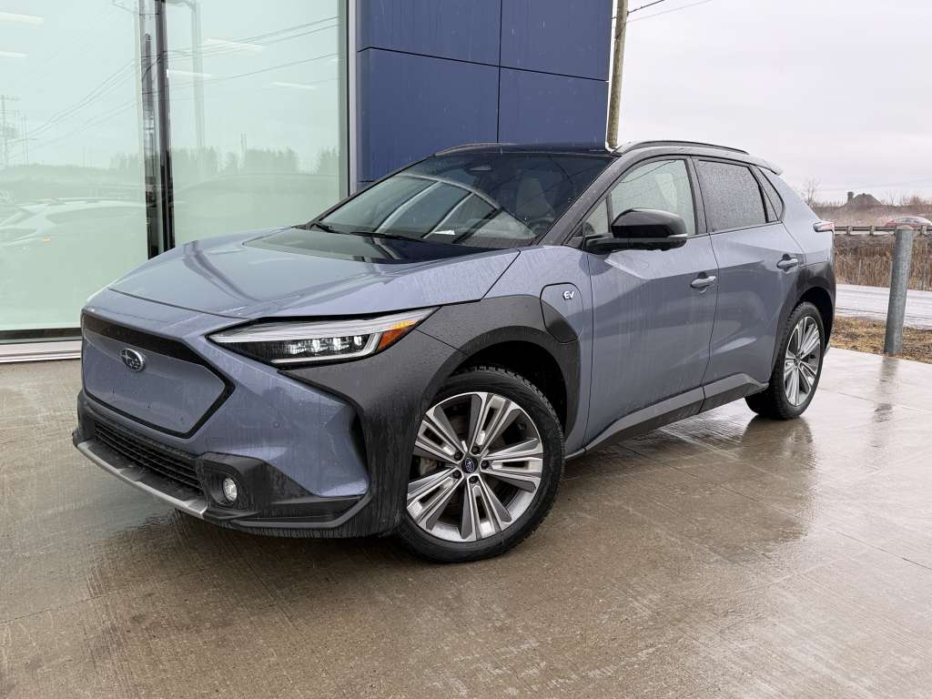 Subaru Solterra 2023 TECHNOLOGY, seulement 50 000 km, propulsion intégrale (AWD) 100 % électrique avec batterie de 72,8 kWh, transmission automatique, couleur bleu pâle recherchée. Propriétaire unique, jamais accidentée, livrée avec pneus d’été sur mags ET un jeu de pneus d’hiver — prête à affronter les quatre saisons canadiennes en toute confiance. Toit ouvrant panoramique, sièges en cuir électriques, sièges chauffants ET climatisés : chaque trajet devient un moment de pur confort, été comme hiver. Système de navigation intuitif, verrouillage électrique, et technologies Subaru de sécurité avancée : tout y est pour simplifier votre quotidien et vous offrir la tranquillité d’esprit. Le design audacieux du Solterra vous démarque, tout en profitant d’une motorisation fiable, écoénergétique et sans compromis sur la stabilité, peu importe la météo. **Points forts et distinctions au Canada pour le 2023 Subaru Solterra :** - Finaliste « Véhicule électrique de l’année », AJAC 2023 - Lauréat « Meilleure sécurité », IIHS 2023 - Sélection « VUS compact électrique à surveiller », Auto123 2023 - Mention « Innovation et traction intégrale », Guide de l’auto 2023 Chaque véhicule est soigneusement sélectionné à la main. Parce que vous méritez ce qu’il y a de mieux, tout simplement.